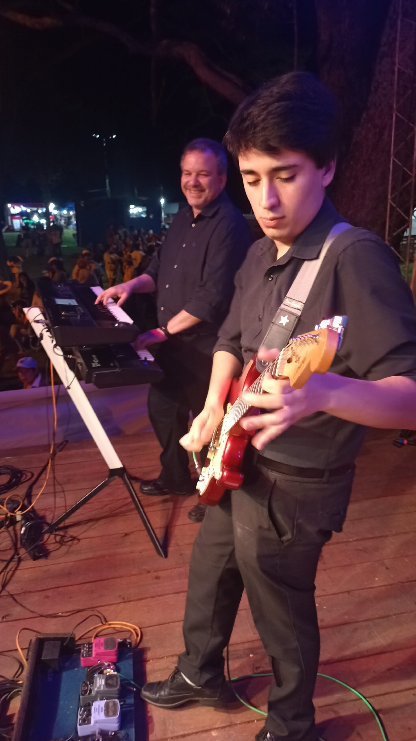 Francisco en la batería, Simón en la guitarra, y Germán haciendo maravillas con sus teclados crearon un ritmo envolvente que resonó en cada rincón. ¡Una verdadera sinfonía de talento y destreza!